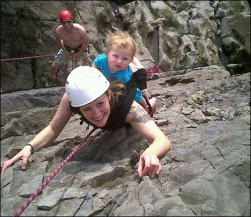 英国威尔士26岁的单身妈妈门纳·普里查德也许是全世界最鲁莽的母亲了,2011年2月,她发在博客上的照片在英国引发了激烈争论。照片中,酷爱户外运动的门纳正背着自己两岁大的女儿佩恩攀登位于南威尔士的三崖湾,门纳和其他攀岩者都戴着安全头盔,而佩恩却没有佩戴任何安全保护装置。对于引发批评的这张照片,门纳:“这很有趣,佩恩也很兴奋,但愿这能对她有所启发,让她接触一下大自然。”