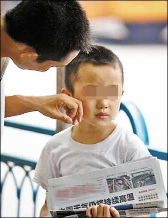 2011年12月,网络上传出一张触目惊心的照片,一根缝衣针从9岁的男孩外耳廓穿过,令人难以置信的是,缝衣针是孩子的父亲扎进去的,原因是小孩上补习班后没有按时回家,而是跑去玩电脑游戏。受“狼爸”将孩子打进北大的启发,广西南宁的一位父亲自创了有过之而无不及的“缝衣针教育”,遭到网民谴责,法律界人士指出,南宁版“狼爸”针刺儿童的做法,涉嫌构成虐待家庭成员罪。