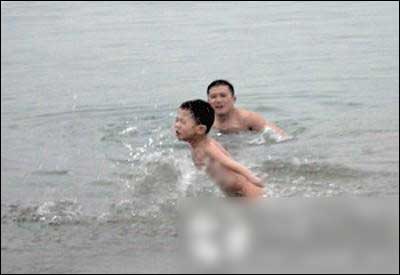 2006年1月,“战胜寒冷,挑战冬天!一、二、三、四……”每天,49岁的孟建国喊着口号、牵着6岁儿子孟庆源,到嘉陵江冬泳。从2005年6月儿子学会游泳起,父子俩风雨无阻。老孟说,“有很多人说我心狠,其实我是希望他长大后成为真正的男子汉。”比老孟小20岁的妻子毛国英,曾在老孟鼓励下坚持冬泳,但因感冒、发烧严重,只坚持到10月就放弃了,她很支持丈夫对儿子的训练方式。“儿子遗传了爸爸很多优点,体质也较好,坚持下去肯定会很强壮。”