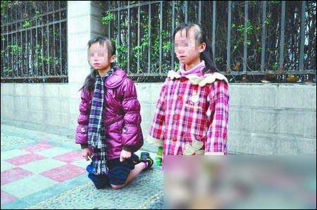 寒冷的天气中,一对10来岁的双胞胎姐妹流着眼泪,赤裸着双膝跪在冰冷的人行道上;对面是她们的亲生母亲,周围是很多围观、议论和指责的过路行人……这一幕发生在2009年11月,成都市衣冠庙附近的超洋花园门口。原因是这对姐妹作业不认真。