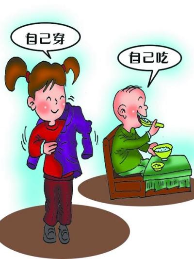 幼儿阶段正是良好行为习惯养成的重要时期。幼儿需要从学习自理能力开始,为今后的独立生活打下基础,自理能力是幼儿适应社会生活必备的重要能力。很多家长放不开手脚,认为孩子还小,长大了再干不迟;或认为树大自直,甚至有的孩子在幼儿园里自己能做的事情,回到家里却衣来伸手,饭来张口,使得在幼儿园养成的良好习惯半途而废,这无形中加大了教师培养幼儿生活自理能力的难度,更延误了孩子生活自理能力持续的发展。