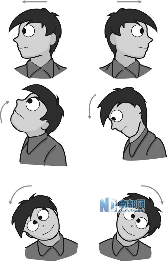 好处:有效伸展颈部不同的肌肉,舒缓颈肩疲劳