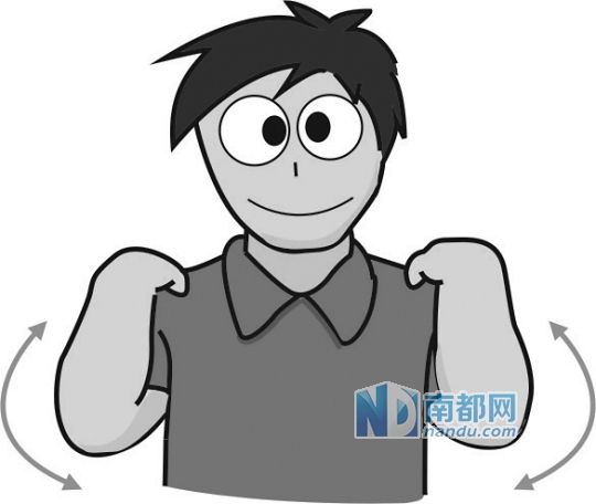 动作:双手放肩,手肘转动,向前向后。