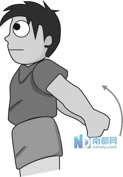 动作:双手放背后,拉拉肩背。