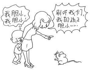 有些家长见孩子要哭要闹,或者淘气调皮不听话,就用大灰狼、老虎、狮子等凶猛的野兽进行恐吓,想以此来唬住孩子;有的甚至用魔鬼、妖怪、狐狸精、雷公等迷信物来吓唬;有的家长索性关掉电灯,发出各种怪叫声,造成一种阴森可怕的气氛。恐吓对制止孩子一时的哭闹,会有一些作用,但它的副作用却是很大的,它会给孩子带来长时间的心理创伤。因为孩子缺乏科学常识,家长随意杜撰出来的那些可怕的东西,会深深地烙在他们的头脑中,形成抹不掉的阴影,以致一到晚上或没有他人时,一想起就害怕。这种孩子不敢接触新奇的事物,不敢去陌生冷僻的地方,心里经常有一种紧张恐怖的感觉,胆量自然很小。