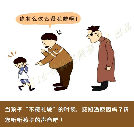 其实,他们只是还不明白什么是礼貌,而我们却要他们去做超出自己理解能力的事,我们要把孩子当孩子,不要强迫他们去做自己还不理解的事情,因为这只是简单的模仿,而不是发自内心的行为。