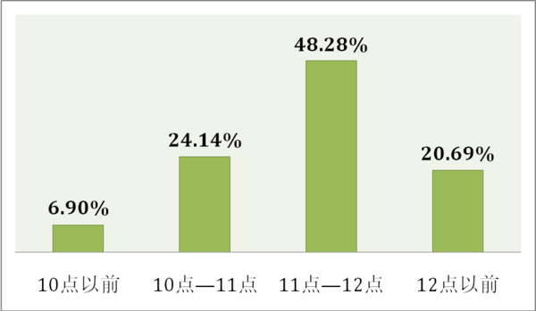 考前一周每天的复习时间6—8小时的占37.93%,8小时以上的占37.93%。(图片四舍五入)