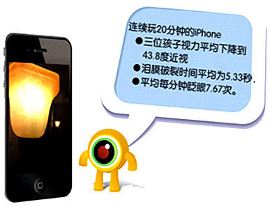 实验数据表明,iPhone,iPad对孩子视力屈光度(近视,远视度数)影响远大于电视,投影;最明显的就是玩了20分钟iPhone手机后,右眼视力下降到假性近视100度的水平;更有一些的六七岁的小朋友,玩了一个暑假的iPad,双眼视力近视了300度。