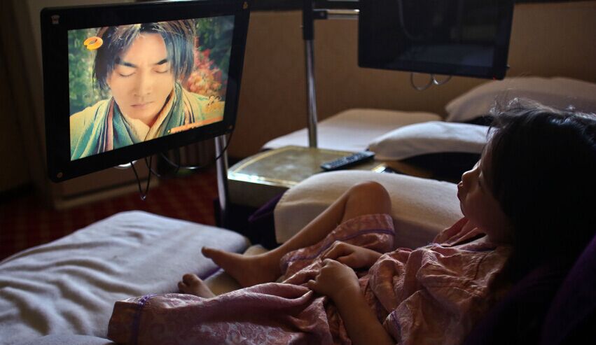 2015年2月3日,昆明,吃完饭,小思瑶打开一台电视在看连续剧。
