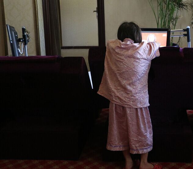 吃完饭,小思瑶打开一台电视在看连续剧,随身穿的衣服都是洗浴中心为她定制。
