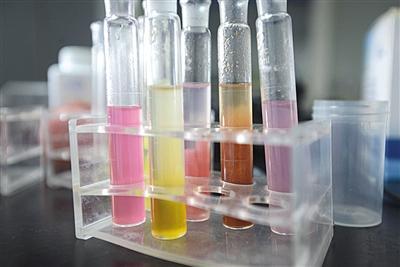 含有色素的溶液放置在试管中待检。新京报记者王嘉宁摄