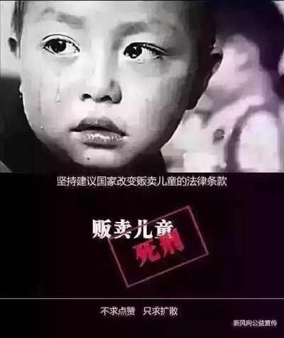 | 17日,朋友圈被广大网友刷屏:“建议国家改变贩卖儿童的法律条款拐卖儿童判死刑!买孩子的判无期!”相关话题引起了社会各界的广泛关注和热烈争议。
