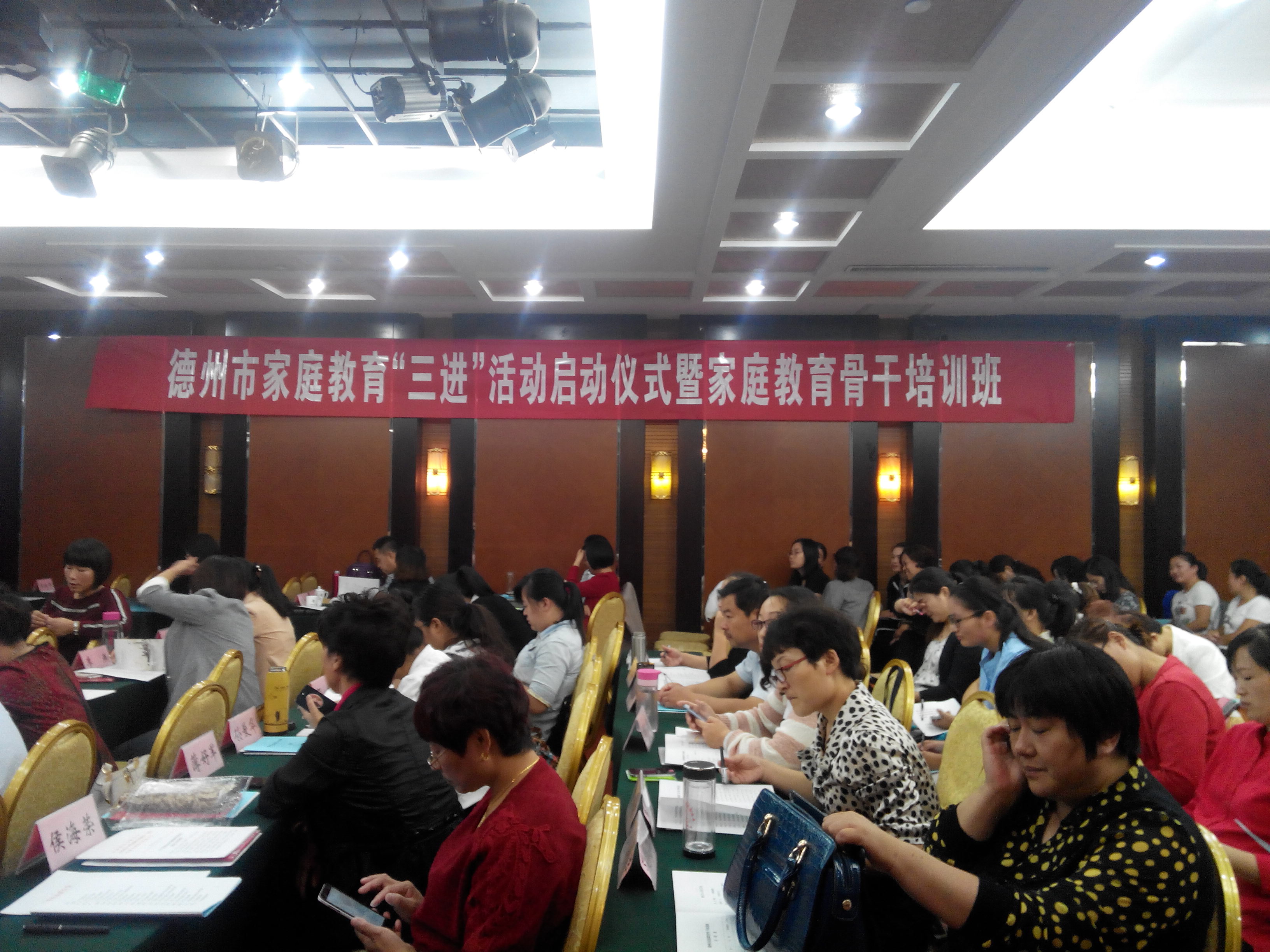 为深入贯彻落实习近平总书记关于“注重家庭、注重家教、注重家风”的重要讲话精神,加强山东省德州市家庭教育工作,德州市妇联联合市直机关工委、市文明办、市教育局日前在德州经济技术开发区新城宾馆举行了全市家庭教育“三进”(进学校、进机关、进社区)活动启动仪式暨家庭教育骨干培训班,来自全市11个县区妇联、教育局、学校和邻市县教育局等单位负责人150多人参加了这次启动仪式和培训学习。市妇联主席杨旭博作了讲话。