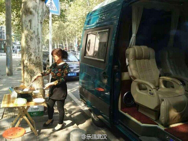 武汉晚报记者联系上博主王女士。王女士介绍:昨天上午11点多,她路过武昌水果湖二小时,看到校门附近停放着一辆墨绿色房车,而中年妇女在房车旁边做饭,让她感到十分稀奇。