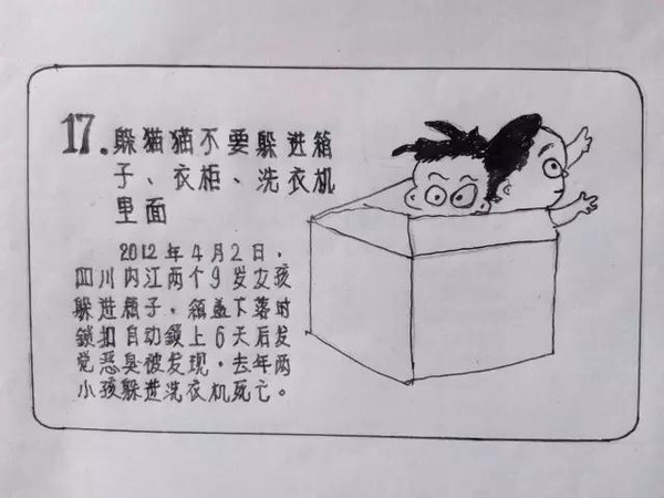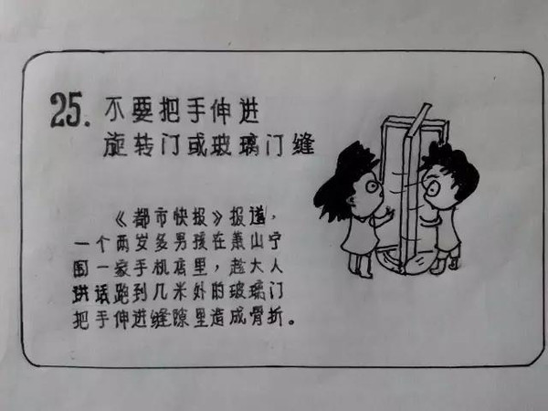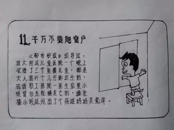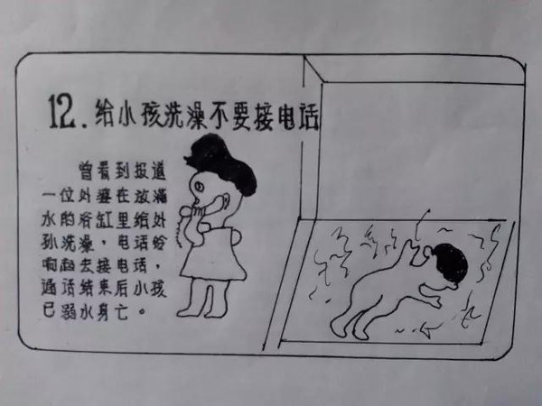 最近,一位杭州外公手绘的《儿童安全警示教育》漫画册在微博上热转,26幅漫画张张都能救命,看了简直满满都是爱。五年来张大爷闲暇时坚持读报剪报,把媒体曾报道过的儿童安全事故记下来,最终手绘成册。笔法虽算不得精致,但“干货”特别多。暖心,还特有年代感,小编看了直呼,走心、服!