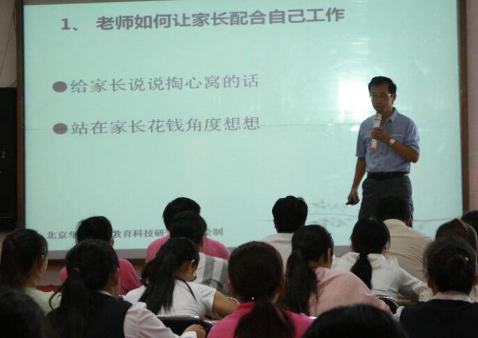 那么,怎么教师怎么有效避免这样的事情不发生呢?这是所有教师都关注的一个大问题。9月12日上午,河北省临西学校100多名小学和初中老师认真聆听了来自北京华夏正源教育科技研究院院长孙金龙以《做好家校沟通 提高教育质量》为主题的知识讲座。孙院长在对上面三个案例一一分析产生的原因和如何才能有效避免后,又从“老师如何用网络做好家校结合”、“老师如何正确消除职业倦怠”、“老师如何让学生快乐接受批评”等9个方面,用很多个精彩案例进行了分析,老师们像学生一样边听边记,并不时给予鼓掌。