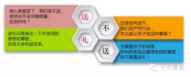如果我们告诉孩子,给老师送礼就是“尊师重道”,是表达情感的一种方式,并且让他自己准备礼物、自己去送,不仅给孩子树立了正确的价值观,同时也锻炼了孩子动手制作能力和主动与老师的沟通能力。