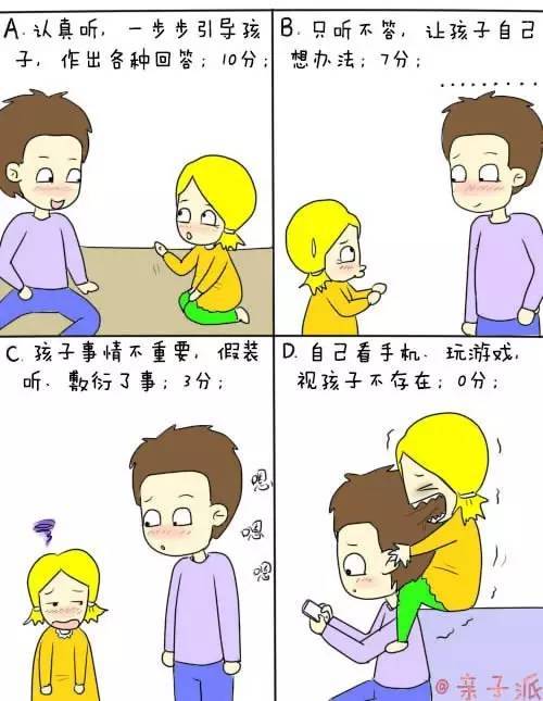 0分。生活中你更像个单身汉,似乎不知自己有孩子。要知道地球上孩子的成长是需要呵护、陪伴和爱的,孩子可是世界上最需要你的人啊!