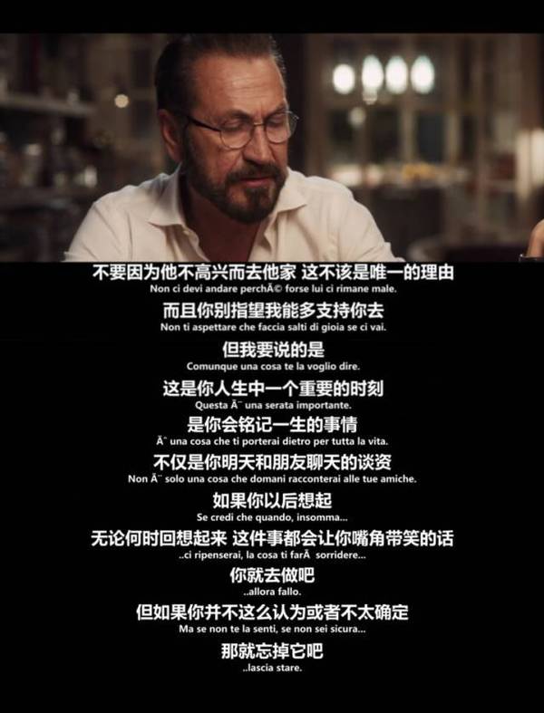 父亲:我要说的是,这是你人生中一个重要的时刻,是你会铭记一生的事情。不仅是你明天和朋友聊天的谈资,如果你以后想起,无论何时回想起来,这件事都会让你嘴角带笑的话,你就去做吧!但如果你并不这么认为,或者不太确定,那就忘掉它吧!因为你还有大把的时间。