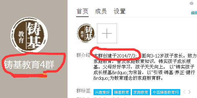 打开“铸基教育4群”资料就可知道,这个群是“2014年7月3日”才建立的,这个日期是建群时腾讯网络自动生成的,只有腾讯的后台可以改变,其他人谁也改变不了,从2014年7月3日到今天也就三年零两个月多点,可这个“专家”却说“群里不知可有人记得七八年前”,并发了几个聊天的截屏,“奔跑吧,××”目的很明白,就是为了让大家相信他(她)是个跟踪服务的“家庭教育专家”,然后找他(她)解决问题,不然为什么瞪着说瞎话呢?一个不诚实的“专家”又能做出什么诚实的事呢!