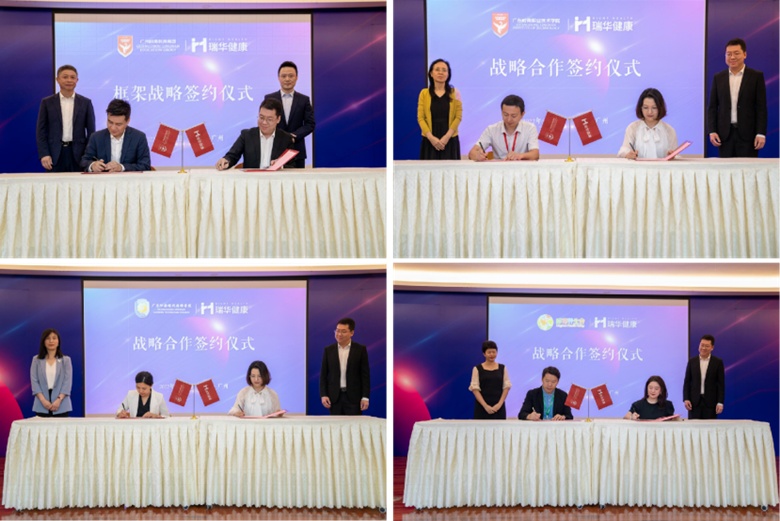 随后,岭南教育与瑞华健康签订战略合作协议,集团旗下广东岭南职业技术学院、广东岭南现代技师学院,广州岭南养生谷投资有限公司分别与广州瑞华健康医疗科技有限公司签订合作协议。